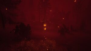 A Ferryman is an anomaly resembling a shadow-based figure with wood on its back, leaving a trail of shadowy human-shaped afterimages that dissipate after some distance. Attached to the Ferryman's bundle is a small trinket of some kind, made up of twine, sticks, and two yellow pendants.